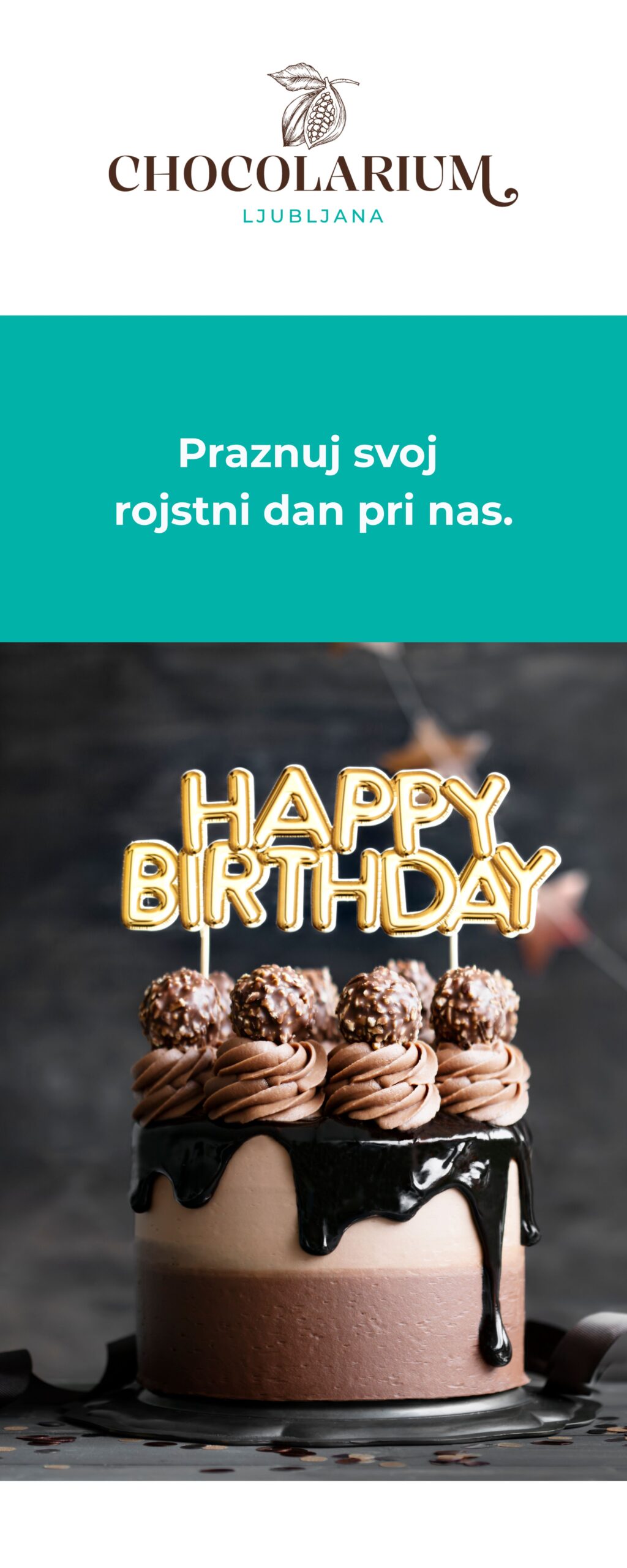 Chocolarium je prvi čokoladni muzej v Sloveniji za vse ljubitelje čokolade. Pripravi se na potovanje v junglo, iskanje kakavovcev in poglej, kako se dela čokolada in kakšnega okusa je lahko. Si pripravljen?